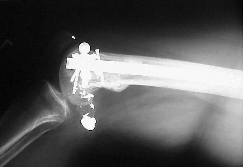 A CT and knee xrays would help identify lateral condyle comminution and/or a "hoffa fragment" of the posterior condyle. I am concerned that the lateral cortex is not sufficient to give purchase for a retrograde IMN. blocking screws could improve this as a possibility. A long blade or LISS if avaible would be my secondary choices. Good luck. Any chance you can get these cases transferred earlier when it