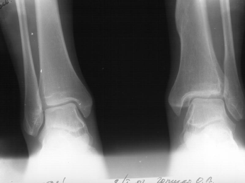 (см. снимки 3 и 4, после удаления, для сравнения со здоровой стороной, фас - стоя с нагрузкой на обе ноги). В настоящее время беспокоят боль и отеки в области голеностопного сустава при нагрузках, после ходьбы. В покое и ночью боли нет. Амплитуда движений в голеностопном суставе практически полная. Имеется заметная боковая нестабильность, т.е. несостоятельность дельтовидной связки и межберцоого синдесмоза. Складывается впечатление, что при остеосинтезе был отколот и смещен в сторону сустава костный фрагмент позади внутренней лодыжки, увеличилось смещение отломка заднего края, что привело к столь ранним проявлениям деформирующего артроза. Встает вопрос - что делать сейчас? Артодез - наверно, рано. Ревизию сустава, моделирующую резекцию? Пластику связок? Что-то еще? Заранее спасибо.