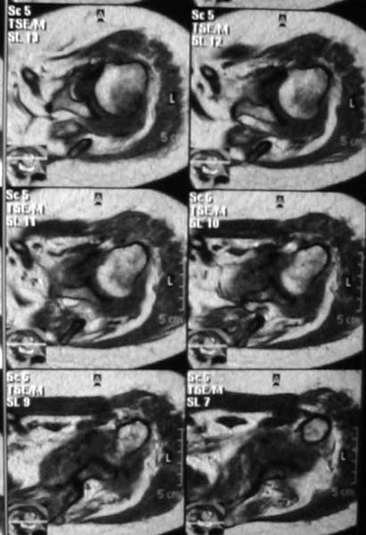 Активное отведение 80 гр., при пальпации - головка плечевой кости безболезненно вправляется и тут же самостоятельно вывихивается. Наложена косыночная иммобилизация, рентгенография (r3) и МРТ. В нашем диагностическом центре МРТ исследование плечевого сустава выполнено впервые, опыта у нас маловато :(. Вопросы: уточнение диагноза? какие исследования провести? тактика лечения? Заранее благодарен! С уважением, А.В.Владзимирский Донецкий НИИ травматологии и ортопедии