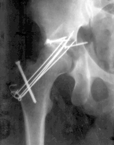 Мужчина 32 года, автотравма 6 недель назад. При поступлении был установлен диагноз "Ацетабулярный перелом". Вывих бедра не был установлен.