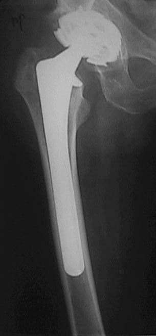 Больному рекомендовали ходить приступая на конечность, отмечает усиление болей, появление укорочения. На контрольных рентгенограммах 19.05.03 рис 3 имеется перелом бедра со смещением, появлением периостальной мозоли. Больной ходит на костылях, приступая на конечность. Сгибание в т\б суставе 90 гр , сгибание в коленном суставе до 90 гр в положении стоя на костылях. Есть несколько вариантов. 1. Провести открытую репозицию фиксацию пластиной с проведением винтов на уровне ножки протеза через кортикальный слой. 2.Провести открытую репозицию фиксацию винтами с межфрагментарной компрессией. Думаем, как выполнить репозицию перелома по длине. 3. Наложить кокситную повязку до окончательного сращения перелома 4. Провести скелетное вытяжение репозицию. Сергей Зырянов Новосибирская область г. Куйбышев ЦРБ