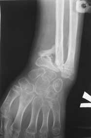 Здравствуйте, уважаемый коллега! Простите. что невнимательно рассмотрел рентгенограмму в аппарате (действительно - идет штанга к запястным костям!). В целом понятна идея тенолиза разгибателей,впаянных в рубец, хотя с ним, как мне кажется, можно было и повременить. Остеотомию, будь я на Вашем месте, тоже не торопился бы делать, а потому и не предлагаю Вам варианты ее выполнения. То, что ребенок из другого города существенно, на мой взгляд, затрудняет Вашу задачу. Сами были в таких ситуациях, прекрасно все понимаем (вот и думай как сроки соблюсти и ребенку помочь...).