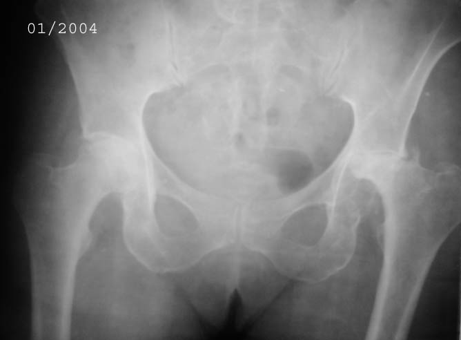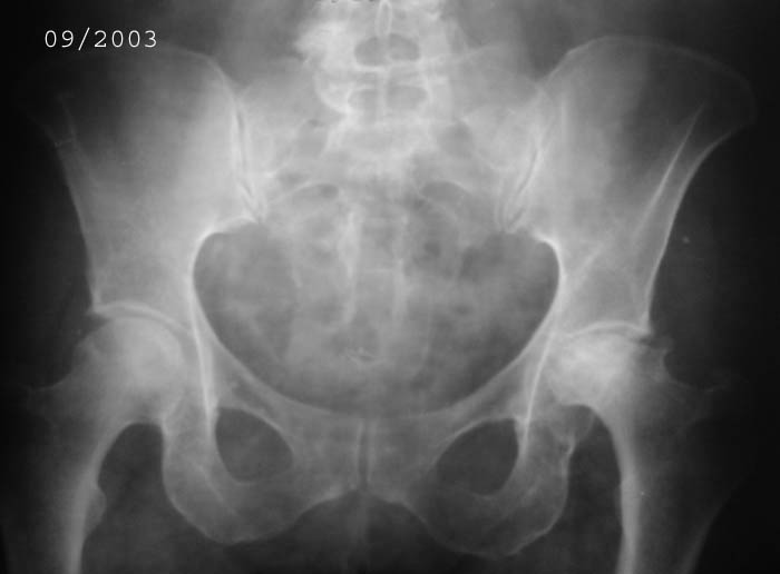 Уважаемые коллеги! Прошу Вас оказать консультативную помощь. Женщина, 44 года, инвалид 3 группыДиагноз: СКВ, асептический некроз головок обеих бедернных костей, двусторонний артроз 3-4 ст., болевой синдром, приводящая контрактураправого тазобедренного сустава, хронический волчаночный гепатит, спленомегалия, анемия, СКВ с 2002 года (подтверждена наличием lupus-клеток), получала специфическую терапию, медрол 16 мг/сут. Боли в левом тазобедренном суставе появились в сентябре 2003 года. Динамика отражена на рентгенограммах. В марте 2004 года - синдром Мэллори-Вейса, кровотечение остановлено эндоскопически. Объективно: кожа бледная, пастозность, отечность лица, высыпания на лице практически отсутствуют. Печень +6 см, селезенка не пальпируется. АД140/80, пульс 100, дыхание 15.