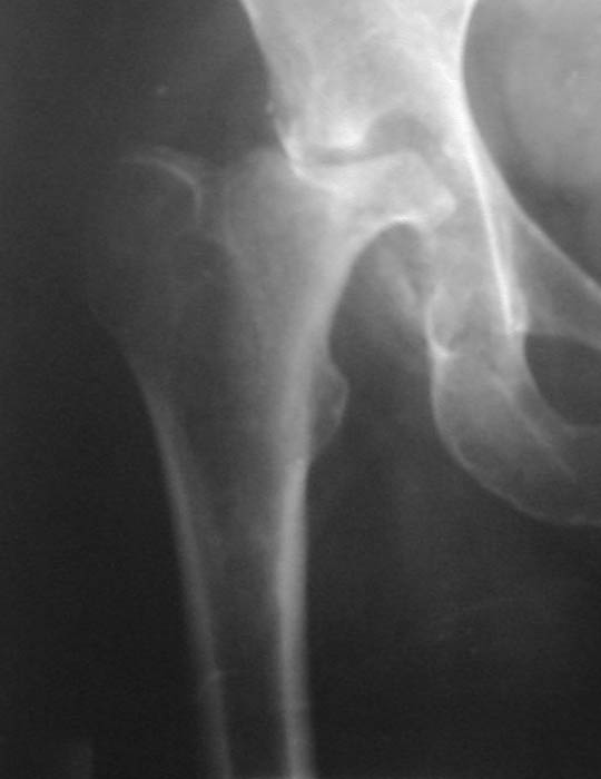 Уважаемый коллега,в практике нашего отделения эндопротезирования крупных суставов был похожий случай, у солдата 19 лет, вдруг ни с того, не с сяго, атрофировался правый глаз, и так - же, даже быстрее, рассосался левый тазобедренный сустав, долго умные люди думали и гадали, что это такое , вплоть до мифического рака глаза с метастазами. Пишу просто и с юмором, уж простите что нет заумных фраз. Лечился в 3 - х госпиталях, - долго думали заумно и интерестно, пока не взяли РНГА на Хлпмидии и соскоб из уретры, оказался реактивный ( да, вот такой быстрый и непонятный ) синдром Рейтера , рентгенологическая картина точно такая - же. Потом поступила женьщина 43 лет, картина аналогичная, только болезнь длилась 3 года. при РНГА тесте - хламидии. Уж не знаю, успел ли вам вовремя написать, пусть я и ошибаюсь, однако опыт не пропьешь, проверьте на всякий случай. В плане оперативного лечения, то уж простите, с вышеуказанными высказованиями категорически не согласен, протез только безцементный, желательно Споторно ( и ножка ляжет как надо, да и вертлуга цела ) . С искренним Уважением. Н.С.