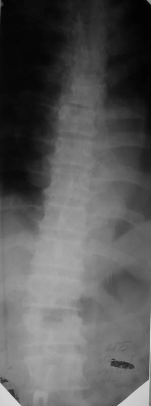12.05.2000г. произведена ЛП с ликвородинамическими пробами, выявлен клапанный блок субарахноидальных пространств спинного мозга. В ликворе белок 0,27/г/л, р-ция Панди I+, цитоз 2/3. 25.05.00г. произведена операция: ламинэктомия Тh5-7 п-ков, опорожнение ликворной кисты, менингомиелолиз. Операция и послеоперационный период прошли безосложнений. Рана зажила первичным натяжением, швы сняты.