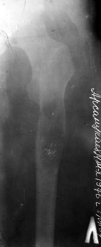 Причина потологического перелома бедра у данного молодого человека может быть всё что угодно, начиная с метаболического процесса, нагноительного, первичного или вторичного опухолевого процесса. Вероятность последнего очень велика, поэтому больному срочно необходимо провести обследоавние, которое включает следующее: