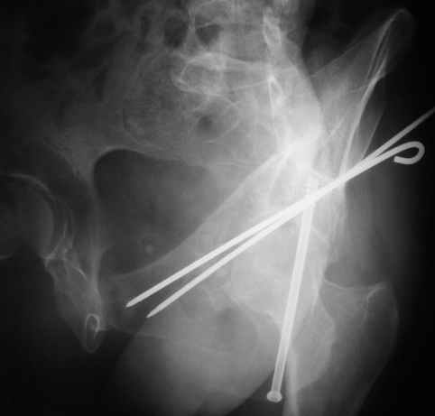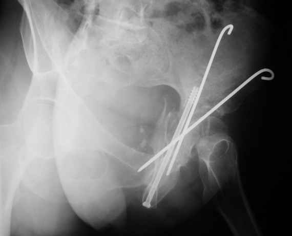 Однако есть альтернатива. Репозиция из подвздошного доступа тазовыми щипцами с разнодлинными браншами или тазовым пистолетом, а фиксация задней колонны через седалищный бугор или тазрвыми винтами 4,5 или каннюлированными 6,5 или 7,3. По-моему я посылал на ортофорум такой снимок, когда жаловался на ишемический неврит седалищного нерва через сутки после операции. Не забудь про шейку бедра - мне кажется будет хорош длинный PFN любой фирмы, какую ты найдешь, а нет так UFN + miss a nail, как это здорово делают мои земляки - Ебурбуки. Пока.