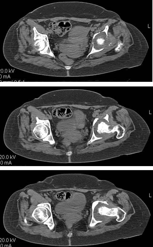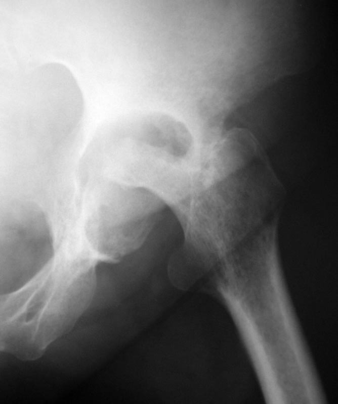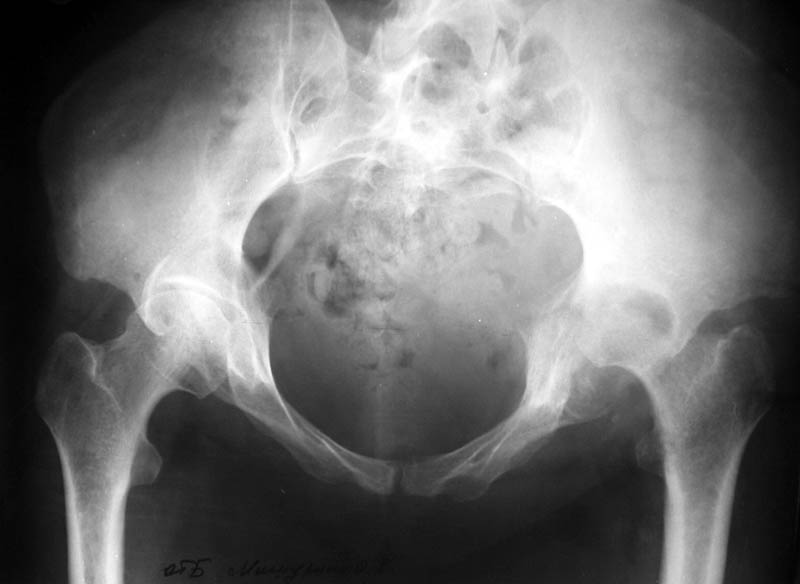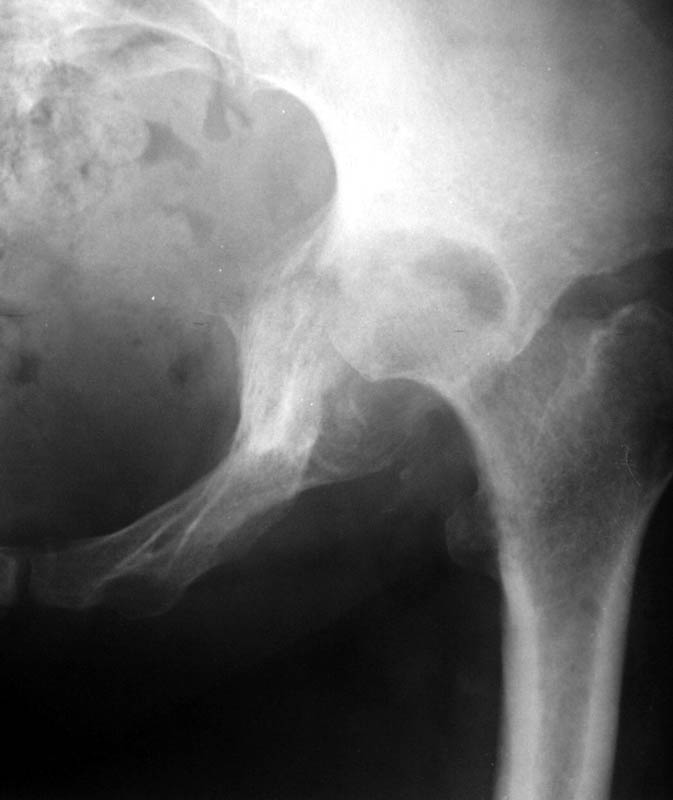 Уважаемый коллега! Последняя версия - мы пролистали ренгенологическую книженцию-так картинка вполне подходит под сустав Шарко (neuropatic joint ). В тазобедренном суставе патология редкая (но меткая). Ищите причину - варианты - нейросифилис, сирингомиелия, опухи спинного мозга (и выше тоже) компрессия спинного