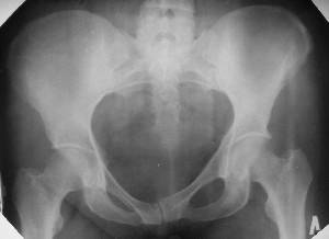 Отсутствие изменений сустава на КТ и обычных рентгенограммах, стойкие боли и ограничение подвижности в суставе - симптомы, характерные для повреждения ацетабулярной губы. ЯМР с контрастом или без должны прояснить картину.