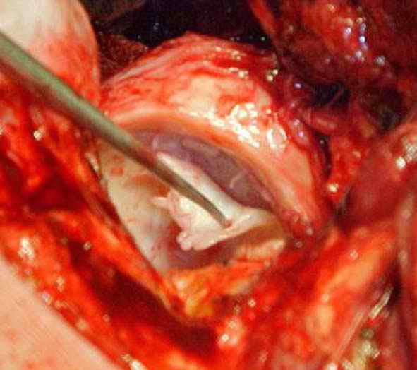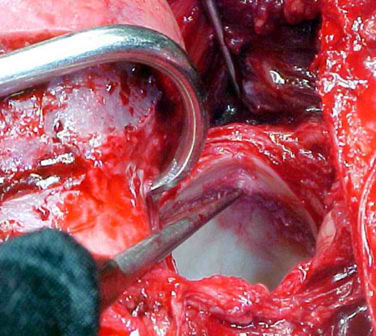 Доступом Watson-Jones спереди открыть сустав, пробником менисков проверяется наличие повреждения, при подтвержении удаление менискотомом или любым вам по душе инструментом. При операции также будет возможность рассечь утолщенную капсулу сустава и после операции капсулу оставить не зашивая.