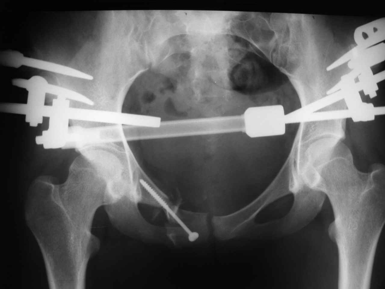 Если что не так, коллеги, более плотно занимающиеся проблемой таза, меня поправят - при застарелом повреждении сочленения одна фиксация аппаратом может ни за какой срок не привести к желаемому результату.