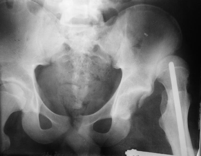 Больной нуждается в дополнительных исследованиях: Ренгенограмму таза, Judet view левого сустава, бедро, голень и КТ ацетабулум. После этих данных можно подумать над этим ребусом, хотя согласен с