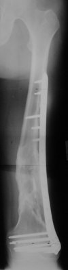 At that moment we had in stock only the 10 mm solid nails so of course there was no idea about early weight bearing. But it was quite enough for early knee ROM excersises (see attached). Two locking screws through the distal block provided that.