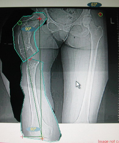 На мой взгляд, для того, чтобы правильно исправить данную деформацию, необходимо обследование больного, которое должно включить в себя, помимо осмотра: 1. Рентгенограммы ( передне-задние и боковые)нижних конечностей на всю длину стоя . 2. Компьютерная томография для измерения длины нижних конечностей. 3. Комьютерная томография тазобедоенных, коленных и голеностопных суставов для измерения углов антеверсии тазобедренных суставов и ротации голеней. Это тот минимум, который должен входить в предоперационное обследование каждого больного с тяжёлыми формами деформаций конечностей.