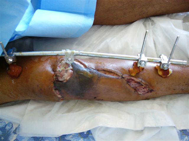 Спасибо за комментарии. Травма тяжелая с проблематичным прогнозом для функции коленного сустава( изначально травма разгибательного аппарата с последующим частичным некрозом собственной связки надколенника и о обнажением рефиксированного фрагмента бугристости большеберцовой кости, дефектом центрального отдела суставной поверхности большеберцовой кости и медиального отдела капсулы сустава).