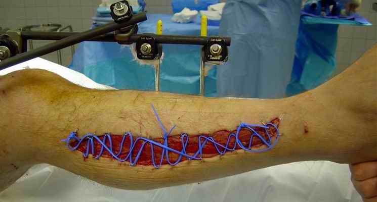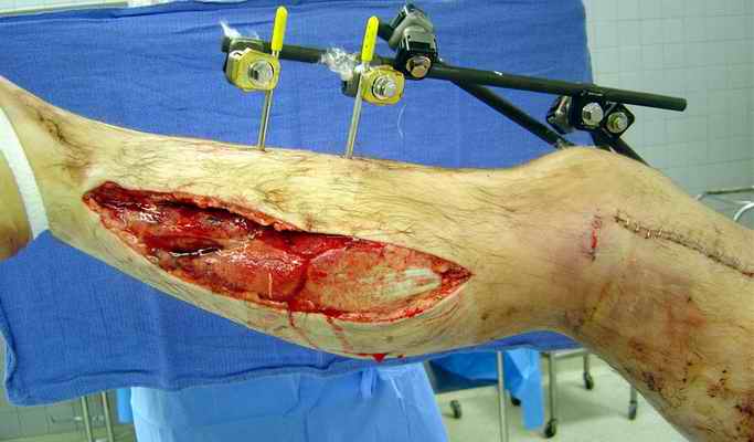 Вторым этапом после 10-12 дней, проводился дебридмент донорского участка и зашивается лоскут на подготовленное ложе после отсечения с одной стороны, одновременная кожная пластика на донорский участок, зашитый лоскут между двумя конечностями страхуется аппаратом или наружным фиксатором любого типа, даже два Steinman pins подходят.