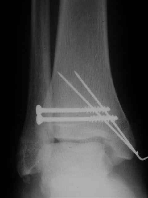 Я предупреждал, что ничего сверхъестественного. Каюсь, что одна из спиц прошла несколько дальше, чем нужно было, но главное - перелом стабилизирован и больной работает суставом в полном объёме, несмотря на представленную раннее травму коленного сустава.