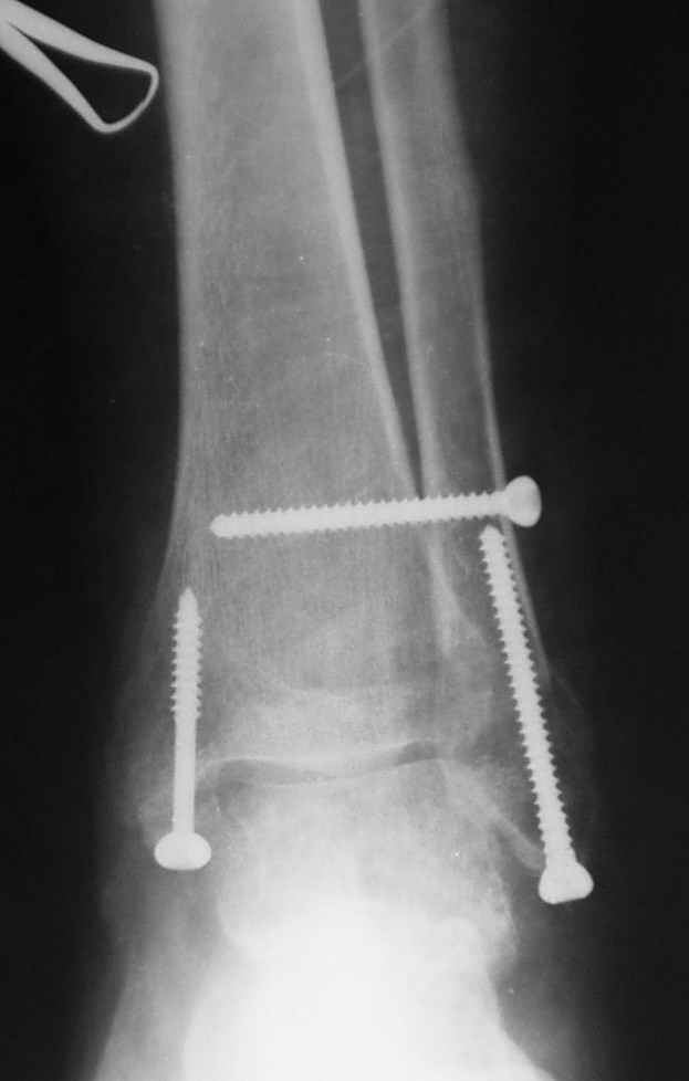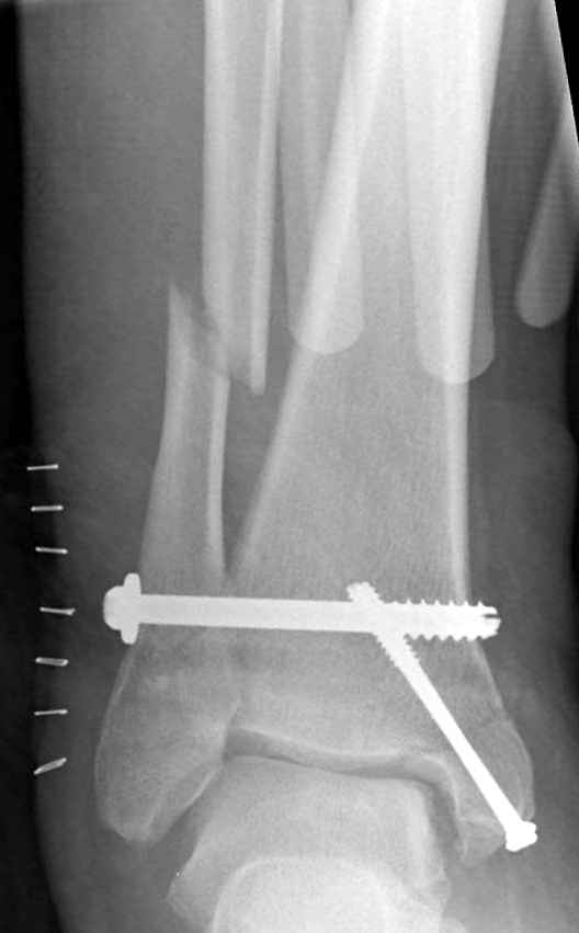 действительно было повреждение синдесмоза - в 4 месяца позиционный винт - не решение. Внутренню лодыжку такую - надо было бы спицами и проволочной петлей. Извините за эти банальности.