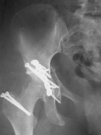 30/11/04 |  30/11/04 |  30/11/04 |  14/12/04 |  14/12/04 |  14/02/05 |  14/02/05 |  21/02/05 | Уважаемые коллеги! Случилось вторичное смещение вертлужной впадины после операции. Посоветуйте, что делать. Пациентка 18 лет. Травма 19.11.04. D.s.: Закрытыый Т-образный высокий перелом правой вертлужной впадины. Закрытый перелом м\мыщелкового возвышения левой б\берцовой кости. 9.12.04 операция - открытая репозиция, остеосинтез переломам вертлужной впадины. 30.12.05 выписаны на амбулаторное лечение с рекомендациями не вставать на правую ногу. 14.02.05 при контрольном осмотре на Р-граммах выявлено вторичное смещение передней колонны. Клинически подвывиха нет, имеется умеренная приводящая контрактура правого тазобедренного сустава, гипотрофия мышц н\конечностей. Госпитализирована в травмотделение. Выполнено КТ. Имеется смещение передней колонны кнутриЮ диастаз 8 мм. Посоветуйте пожалуйста, что предпринять в данной ситуации.
