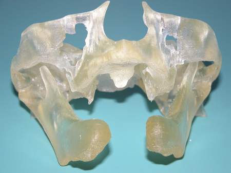 Компания CyberOrthology с 1997 года работает над созданием модели и приобрела небольшой опыт, сделали модели для нейрохорургов для покрытия больших дефектов черепа (материал для закрытия дефекта использовали Hydroxyapatit), а в основном работаем для своих ортопедических нужд, иногда для подбора custom made implant, т.е. заранее подготавливается имплантируемый материал.