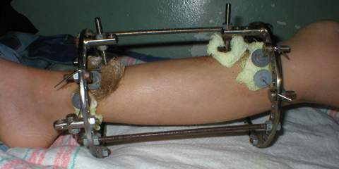 МТ мы используем, конечно, не только на голени. В прилагаемом примере у парня при поступлении была наружная ротация 40 гр. и "полумертвый" коленный сустав. Можно был бы, конечно, до конца использовать полную компоновку. Но для того он и есть метод выбора.