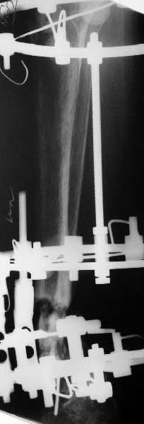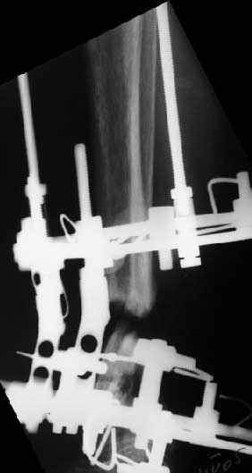 Аппарат - чтобы плавно исправить ось. В приложении - снимки на момент окончания коррекции в аппарате, фото с операции, и послеоперационная рентгенограмма.