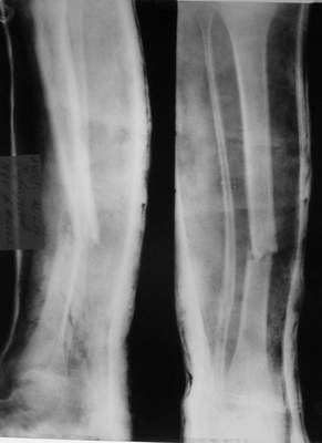 2 Тугоподвижный ложный сустав н\3 б\берцовой кости. Рубцы выполняющие пространство между отломками, канал проксимального отломка иссечены.