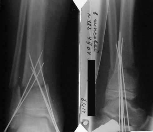 вытяжение, хотя фиксация спицами при поступлении уберегла бы нас от осложнений в