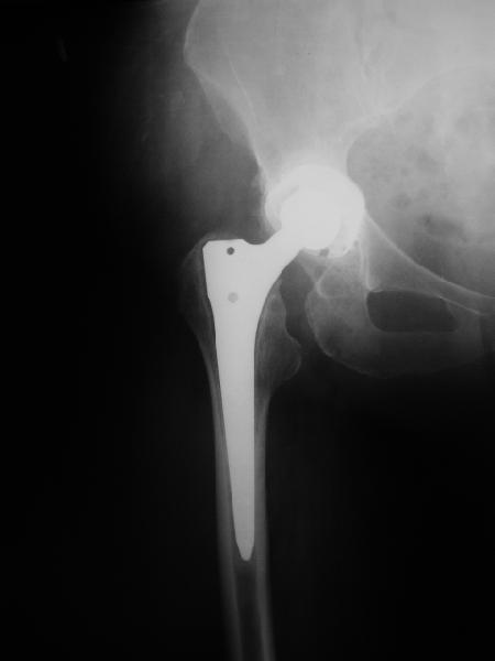 из В наше отделение обратилась больная (родственница одного из сотрудников) 1948 г.р. В 2002 г. тотальное эндопротезирование тазобедренных суставов в Кургане. Все было благополучно до 22 апреля этого года, когда при развороте на фиксированной стопе появилась резкая боль в правом тазобедренном суставе и верхней трети бедра. Конечность стала неопорной. Активные движения - резко болезненны. Пассивные - свободные, безболезненные. Местно - есть зона гиперемии в вертельной области. Пальпаторно - флуктуация (гематома?) по задне-наружной поверхности бедра. Температура субфебрильная. Больная сейчас на постельном режиме, двигаться, а тем более вставать отказывается из-за боли. Снимки прилагаются. Больная обращалась в клинику эндопротезирования Уральского НИИТО, ей было отказано даже в консультации. Вопросы - обязательна ли ревизия протеза? В условиях нашей больницы организовать ревизионное протезирование проблематично. Есть ли возможность и на каких условиях можно вновь попасть в Курганский институт? И про ближайшие дни - надо ли пунктировать область флуктуации? Назначить ли антибиотики? Еще какую-то медикаментозную терапию? Какие-то другие меры? Спасибо. Юрий Валерьевич Антониади Центральная городская больница N24, Екатеринбург.