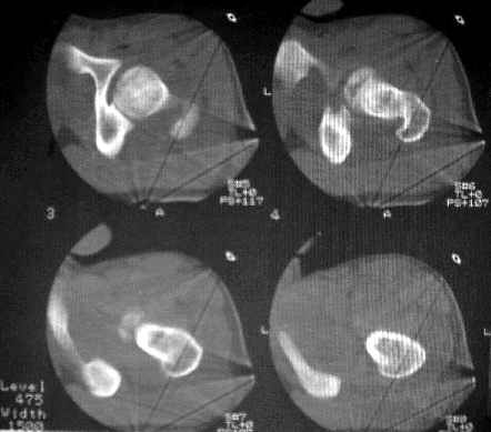 из Камчатский Военно - морской госпиталь Уважаемые коллеги! Спасибо всем, кто откликнулся на обсуждение. На сегодня доделаны боковые снимки и КТ. Компьютера с возможностью 3D реконструкции на Камчатке нет. Официальное заключение по имеющимся сканам: имеется оскольчатый перелом головки бедра с фрагментацией ее передне-нижнего отдела. Соотношения в суставе в настоящее время правильные. Кзади и выше него в мягких тканях - отдельно лежащий костный фрагмент 15х25 мм (вероятно от головки). Досылаю на форум КТ и R-граммы. У самого, откровенно говоря, сомнения остаются относительно того, что это не фрагменты вертлужной впадины. В последнем случае, думаю надо оперировать, а если это фрагменты головки из ненагруженной зоны - то не уверен. Какие есть мнения, в том числе и по срокам рагрузки сустава? Главный травматолог Камчатского Военно-морского госпиталя Булахтин Юрий Алексеевич Больного сейчас ничего не беспокоит. Уложен на щит, иммобилизация деротационным сапогом.