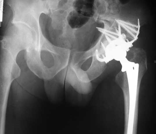 In such cases we use hip arthroplasty with "Octopus" acetabular system (De Puy). This system consist of acetabular ring and cementless cup.