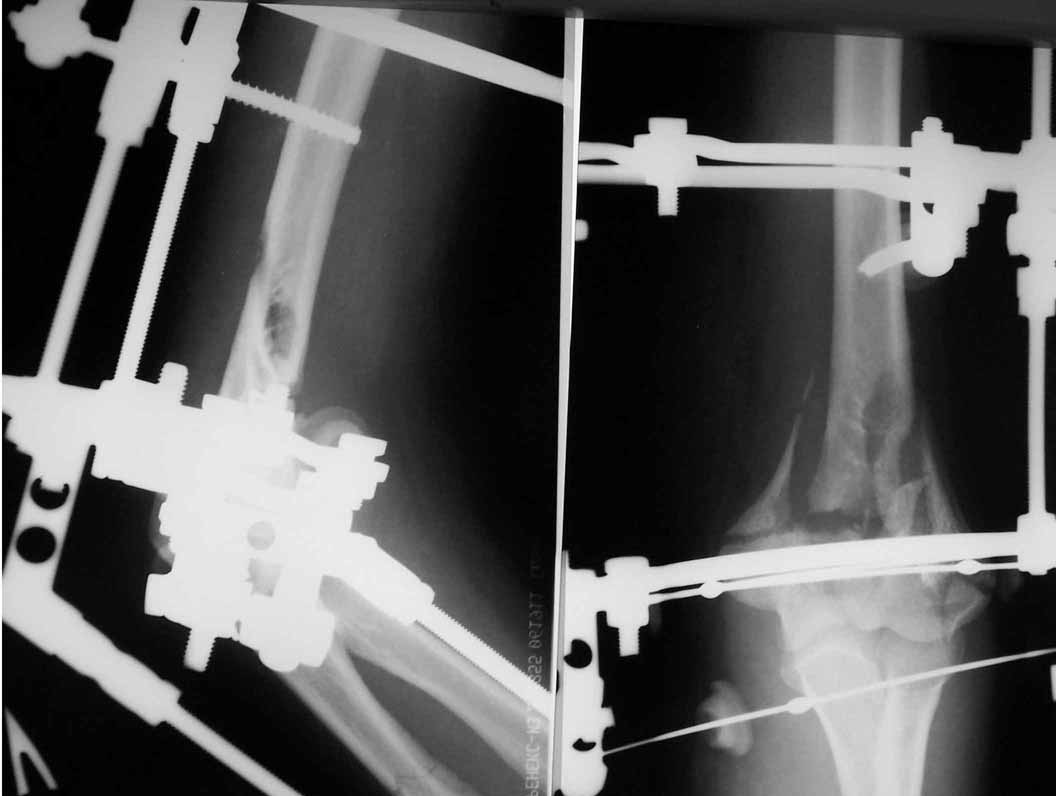 Больному сделали обработку и наложили временный аппарат внешной фиксации плечо-предплечье.