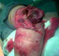 Обработка раны и spanning аппарат. То есть по секции на плече и предплечье, сгибание в локте 90 градусов. Потом повторные обработки. По заживлении ран - переоценить ситуацию "с чистого листа".