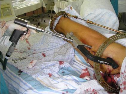 I would use a small wire distractor mentioned in the list some times. Proximal wire is in the iliac crest in AP direction. The leg is adducted. I attached some images. At the AP view under image intensifier you can see adduction but even slight valgus reduction.