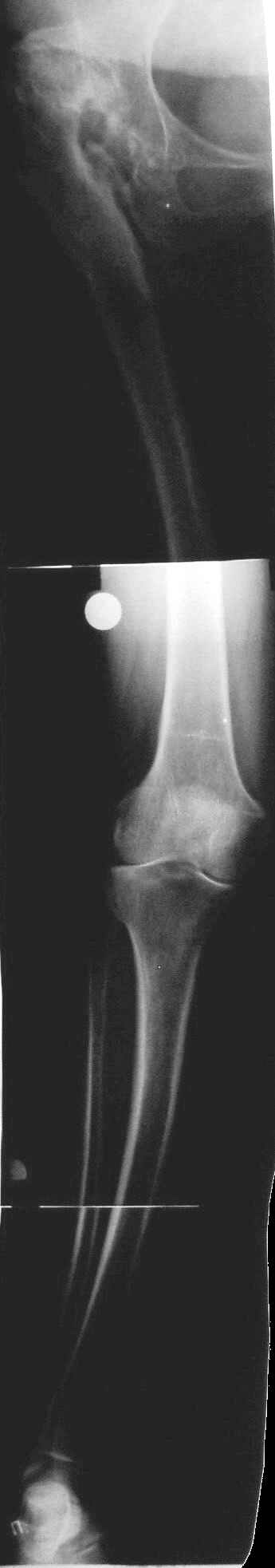 Прежде всего хотелось бы уточнить движения в тазобедренном суставе (хорошо - в неоартрозе): главным образом - возможности отведения. Если на Рг максимальное отведение, а вальгус бедра и голени компенсирет положение ноги для возможности ходить, то этапоное лечение (ось - эндопротез), по-видимому, не подойдет.