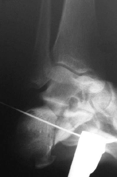 представляю снимки пациента с переломом пяточной кости. послеоперационный снимок этапный - по снятии швов спицы удаляю и наладываю циркулярную гипсовую повязку. к сожалению снимки с удаленной скобой представить не могу но поверьте на слово - консолидация полная, коррекция стойкая.