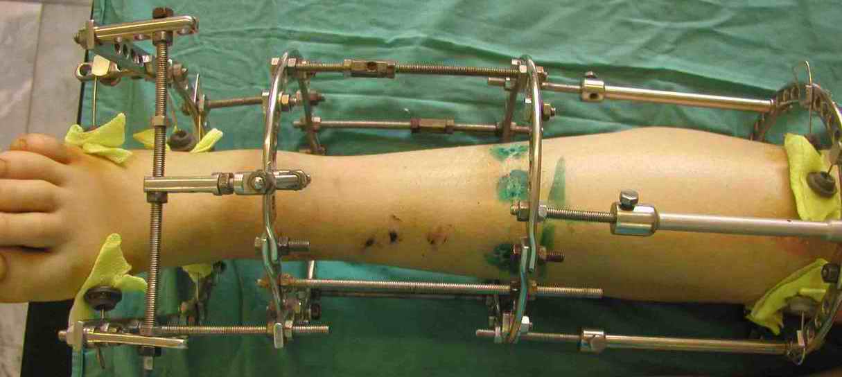 внешним фиксатором после безуспешных попыток лечения пластинами с