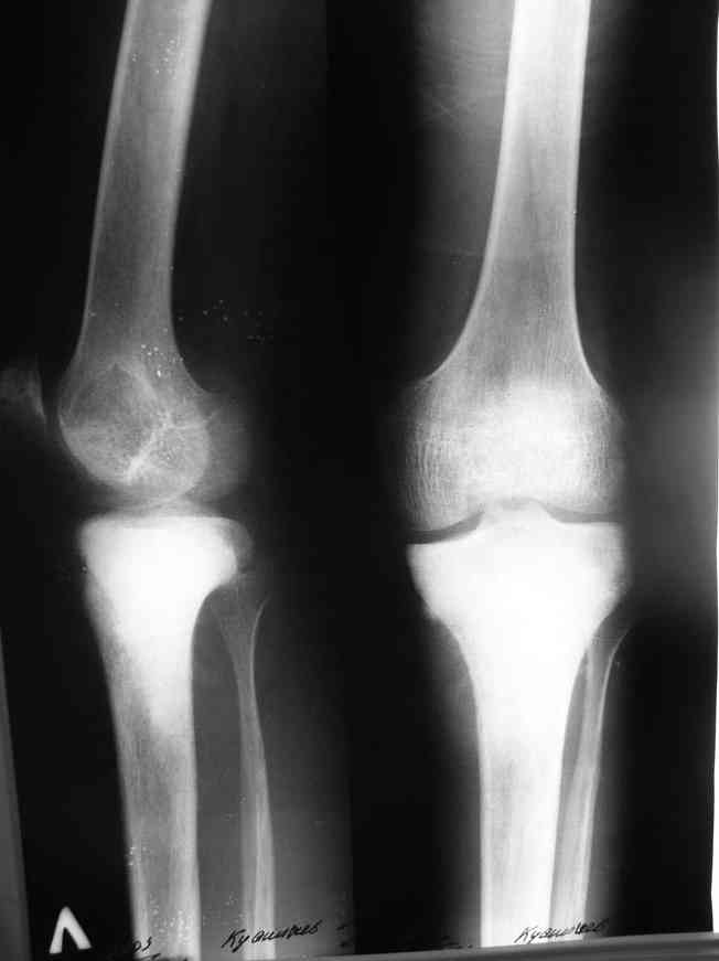 Припухлость над опухолью и кожные изменения, подобно воспалительной и боли при нагрузке могут быть приняты общими ортопедами как остеомиелитический процесс.