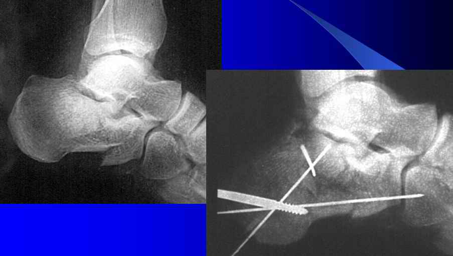 Уважаеемый коллега.Слева ситуация достаточно не сложная.Суставной фрагмент вклинился в тело.Необходимо наружным доступом освободить отломки,поднять суставной фрагмент и фиксировать пяточной пластиной LCP.