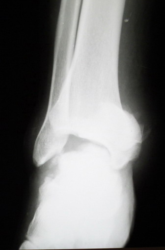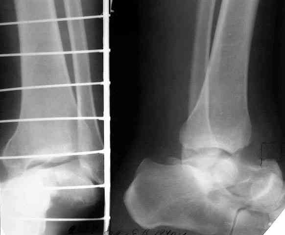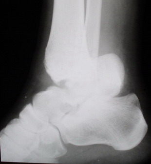 Среди повреждений таранной кости (Hawkins III-IV) с одновременной травмой лодыжек встретилось следующее (см. вложение). Пациент упал в колодец на глубину 10 метров (Х.2002 г.), госпитализирован с диагнозом: з/перелом шейки правой таранной кости (Hawkins IV) с переломовывихом тела назад и кнутри, закрытый перелом внутренней лодыжки и переднего края большеберцовой кости. Оперирован в первые 12 часов после травмы, выполнена открытая репозиция таранной кости, внутренним и передне-внутренними доступами, остеосинтез переломов шейки и тела губчатыми винтами, для реваскуляризации тела таранной кости первичный компрессионный над- и подтаранный артродез. Синтез внутренней лодыжки губчатым винтом. Удаление винтов через 1 год,2 мес. Получен анкилоз указанных суставов с сохранением длины конечности, полная реваскуляризация таранной кости, о чем говорит сращение ее переломов, отсутствие отеков и