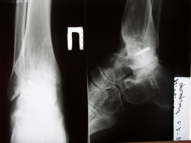 Ваш совет заставил нас еще раз взвесить все «за» и «против», почитать медицинскую периодику и, в итоге, скорректировать наши планы. Предложенный Вами метод лечения в подобной ситуации поддерживают также и другие наши коллеги (например, статья Tibiocalcaneal fusion for avascular necrosis of the talus M. G. Dennison, R. D. Pool, R. B. Simonis, and B. S. Singh J Bone Joint Surg Br 2001 83-B: 199-203). Не вызывает сомнений и необходимость удлинения большеберцовой кости для компенсации укорочения поврежденной конечности.