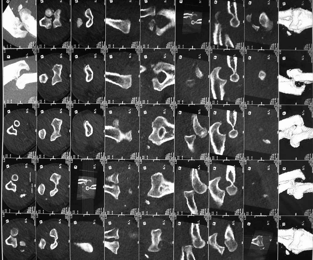 Чудеса конечно бывают, но не настолько же? Если рентгенограммы и томограммы одной конечности, то они явно разнесены по времени и событьиям. Нужно что-то повторить Rg или КТ и тогда уже думать. С уважением Шевырев К.В., МОНИКИ