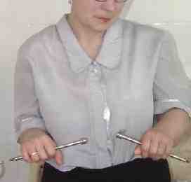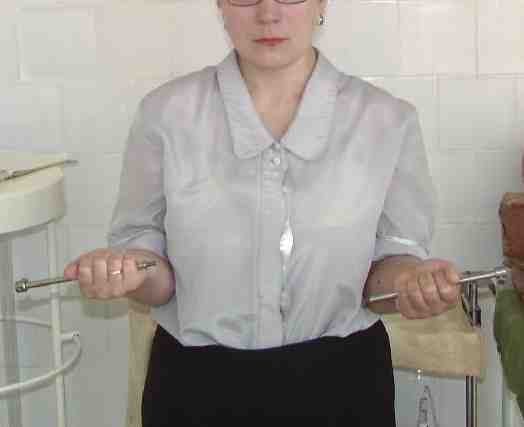 А для оценки ротации лучше сделать фото - дать пациенту зажать в кулаки одинаковые палочки (телескопы от апп. Илизарова идеальны), поставить... Впрочем, вот фото, чтобы все было понятно без слов. Локти к бокам пусть остаются прижатыми не только при супинации, но и при пронации.