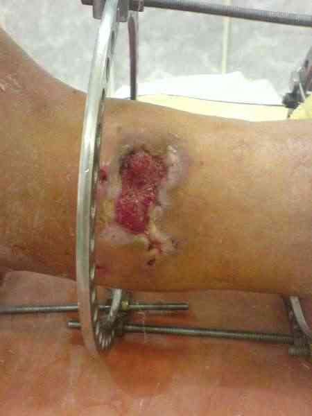 Здравствуйте, коллеги.Сегодня закрыл грануляции расщепленным кожным лоскутом. Начало см здесь Дефект устранил "гофрированием" мягких тканей голени. После этого спицы из дистального отломка удалил. В зоне сближенных отломков идет оссификация. Укорочение голени около 5 см. Что можно предпринять дальше? Тибиализация? Последующее выращивание регенерата в АВФ (в какие сроки оптимально)? Как освободить стопу (и нужно ли сейчас) для разработки в голеностопном суставе? С уважением, Заднепровский Никита Николаевич