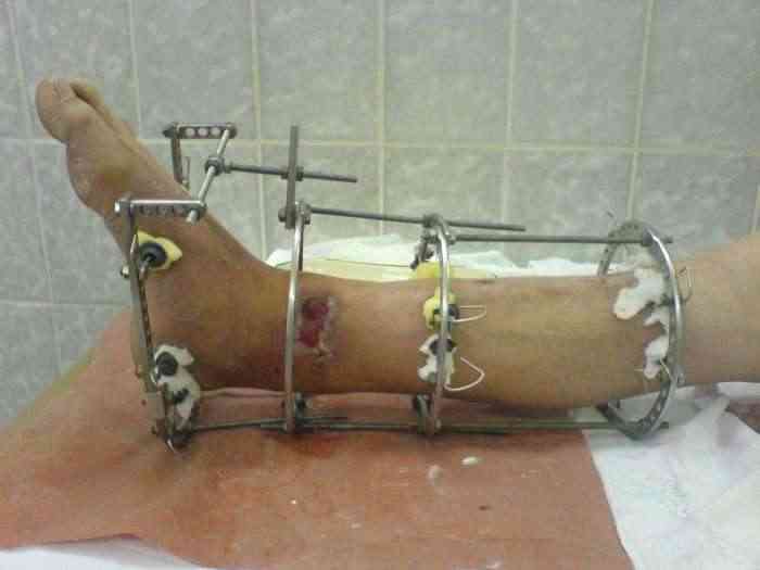 Тибиализация малоберцовой кости используется при замещении дефектов большеберцовой кости по методу Илизарова. Спицами с напайками тянут фрагмент малоберцовки к большеберцовке до образования костного блока. В данном случае я расчитываю "укрепить" место перелома фрагментом os fibula который зашел по длине при "гофрировании", так как между отломками рубцовая ткань и расчитывать на истинное сращение здесь, видимо, не придется. Или все же попытаться сдавить отломки tibia с целью раздавливания межотломковых интерпонирующих тканей да начинать "выращивать" остеорегенерат?