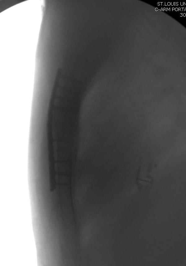 Ложный сустав зафиксирован двумя пластинами 2.4 мм (locking plate) позаимствованными из челюстно-лицевой хирургии, с костной пластикой, все остальные пластины мне показались слишком толстыми, грубые для грудины или отсутсвовали возможности создания угловой стабильности.