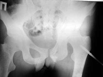 Уважаемые коллеги! Хотелось бы услышать совет по тактике лечения представлленого больного.Поступил после лечения в одном изотделений области. Травма 2,5 месяца назад. После выведенияиз шока был произведен остеосинтез перелома бедра, предплечья, до перевода к нам проводилосьвытяжение по оси шейки бедра за стержень, введенный в большой вертел. На сегодня деформацияригидна, клинически мобильности не определяется. Заранее признателен. P.S. Данный вид травм не включен в перечень "высокотехнологичных операций", направить длялечения по квотам Минздрава очень сложно.
