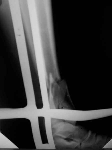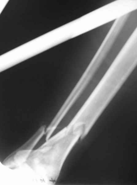 Berja vo vnimanije problemu mjagkih tkanej i risk otkritoj repoziciji, proboval bi fiksirovatj intrameduljarnim sterznem.