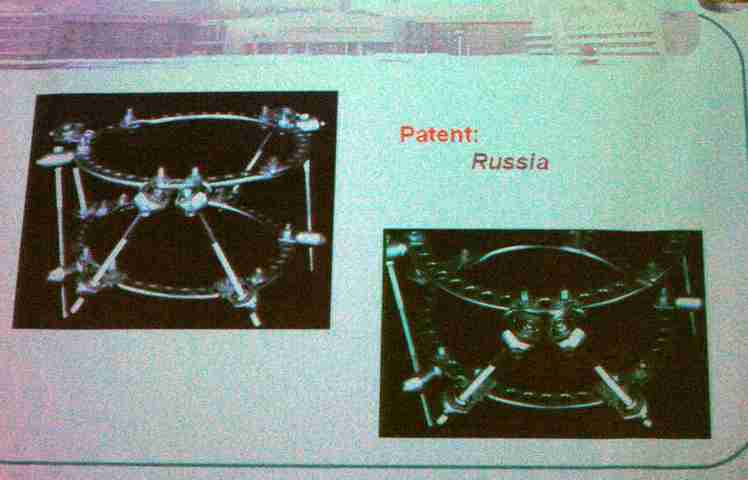 Уважаемые коллеги! Посылаю несколько снимков, снятых во время докладов по применению аппарата Тейлора на конференции в Киото. Обращаю ваше внимание на добавочные стержни, установленные на аппараты Тейлора!!! Интересно, зачем их надо устанавливать на аппарат, который в 1.1 раза прочнее на аксиальную компрессию, 2,0 раза прочнее на изгиб и 2,3 раза прочнее на ротацию??? Может, уважаемый Марк нам объяснит!!!