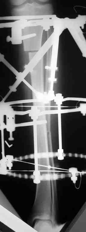 When reduction was finished, the Hexapod set was removed and further management has been continued by standard Ilizarov regime. Good anatomic and functional results were achieved. Выше представлены рентгенограммы открытого оскольчатого перелома нижней трети голени X-rays of Compound Comminuted # Distal/3 Lt Tibia Операционные снимки перед и после наложения аппарата Илизарова In operation room before and after Ilizarov apparatus has been applied Послеоперационные рентгенограммы Postoperative X-rays В нижнем ряду представлены рентгенограммы после окончательной репозиции. And final reduction after Hexapod program has been finished Одновременное и точное исправление многоплоскостной деформации является очень важным моментом, который трудно даётся при применении аппарата Илизарова, особенно при сочетании с ротационной деформацией. В этом случае гексаподный аппарат Илизарова незаменим. Simultaneous and exact correction of multilane deformities combined with rotation is very important and difficult to accept at application of Ilizarov apparatus. In these cases Ilizarov hexapod apparatus is irreplaceable. Представлены фотографии и рентгенограммы 21летней девушки, страдающей от bilateral leg malalignment syndrome. The next figure shows pictures and x-rays of 21 y.o. female with bilateral leg malalignment syndrome Перед лечением. Before treatment После деротации левого бедра и голени. After derotation osteotomy of lt femur and tibia Результат The final result after derotation osteotomies of rt femur and tibia. В верхнем ряду показаны рентгенограммы до, после коррекции и после снятия аппарата Илизарова. On the upper row the X-rays of lt leg before correction, after correction and after apparatus removal have been showed. В нижнем ряду представлены два снимка после коррекции деформации правой голени. Видно, что качество коррекции не зависит от квалификационного наложения аппарата Илизарова, что было специально произведено для проверки работы программы. Lower two X-rays – rt leg after deformity correction. As you can see the quality of correction does not depend of placement of Ilizarov Apparatus Добавление Гексаподной приставки к аппарату Илизарова сохраняет его независимость и универсальность, позволяя достигнуть более точной и аккуратной коррекции деформации посредством компьютерного обеспечения. Этот метод простой, лёгкий и экономически эффективный. Я настоятельно рекомендую его к широкому применению!!! The addition of the Hexapod set to standard Ilizarov fixator preserves the independence and universality of the original system while enabling precision accurate corrections of deformity through its software support. It is simple, easy and economically effective. And I recommend it for use very much.